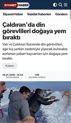 Çaldıran İlçe Müftülüğü, İlçe Tarım ve Orman Müdürlüğü ile koordineli bir şekilde doğada aç kalan hayvanlar için yem bırakıldı.